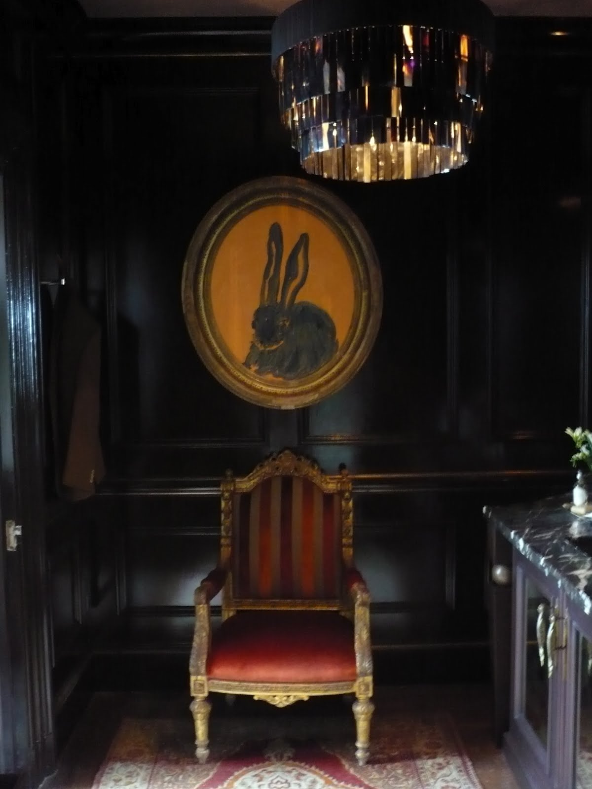 ReplyDeleteso much to love but the bunnie portrait has won me overj, though there has to be a better place than the men's loo for poor bun.