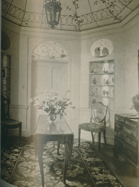 A few weeks ago, I found these black-and-white photos of the house and its gardens in some 1932 and 1933 issues of House & Garden. The house was originally decorated by Porter and Porter, which was Atlanta's prominent decorating firm of the day. Although the house looked more pulled together in 1932 than it did in the 2008 photos, below (taken when the house was on the market after having served as headquarters for the Southern Center for International Studies), you can see that what made the home's interiors so enchanting- the Chinese red Chippendale banister, the dining room's Chinoiserie mural that was painted by Allyn Cox, and the exquisite breakfast room that was painted by Athos Menaboni to resemble a bird cage- have remained intact.