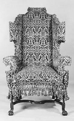 It's not a wing chair that you see very often, something that made finding examples of it rather difficult. I was able to find two photos of a William and Mary wing chair in situ. (And honestly, I can't tell if the chair in the Castle Howard image is a William and Mary chair or not, but the shape does look similar.) In the photo immediately following the text, the bright red chair stole the show. At Castle Howard, well, not so much so, but the chair did have major competition from the room's architecture. Anyway, it's a chair that I personally would like to see more of. In fact, I'm even hoping that it supplants the now ubiquitous porters chair as the new "it" chair.