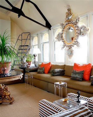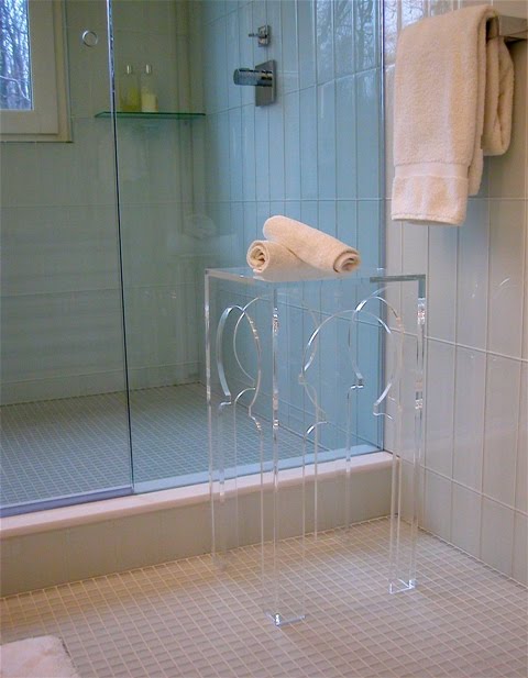 The only downside to this, of course, is that all of those little tables scattered around can lend a bit of a cluttered look to a room. This is why I'm a fan of White Webb's Clearly Classic line of occasional tables. First, they're made of lucite which means that they don't add a lot of visual heft to a room. You can have all of that function without having to worry about how to incorporate the form into your room. The other thing that captivates me are the tables' architectural shapes. They're exotic yes, but thanks to the lucite, it's exotic-light. These tables will work in any interior.
