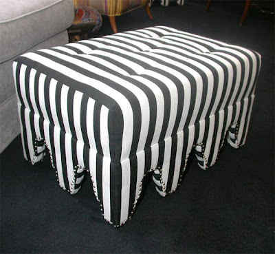 Black and white striped ottoman, one of a set of 3, at Dragonette Limited