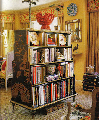 First, this Chinoiserie bookcase in the home of designer Alex Papachristidis is divine, but the books within it are pretty stellar too. A few noted titles: Beaton in Vogue, Sister: The Life of Legendary Interior Decorator Mrs. Henry Parish II