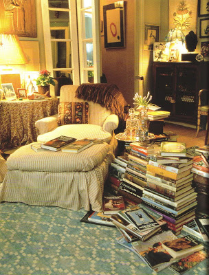 My neatnik gene prevents me from piling copious amounts of books on the floor as Keith Irvine did here in his Manhattan apartment. Nonetheless, he has some erudite reads: London Perceived and Pleasure and Privilege