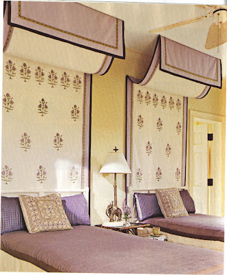 That is, until I saw this image of a glorious brooch designed by Tony Duquette. The amethyst and kunzite look so beautiful against the glint of the brooch's gold setting. And a few days ago I came across this image below of Mary Jane Pool's bedroom with its lavender bedding and curtains. Let me tell you, if purple is good enough for Mary Jane Pool, then it's A-OK with me. So perhaps I'm coming around to purple. Sometimes you just have to have an open mind.