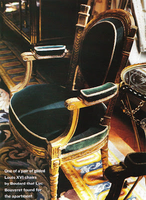 One designer who is quite skillful at mixing Castaing fabric is Bruno de Caumont. Although not featured in the above mentioned book, de Caumont's former Paris apartment garnered widespread acclaim a few years back because of his deft use of Castaing prints throughout his home. Of course, being the creative director of Edmond Petit (the company that produces the Castaing collection) may explain his enthusiastic use of her fabric, but I think he really did a smashing job.