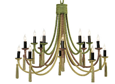 But it's the passementerie covered chandeliers and sconces that have caught my fancy. They're wildly chic and whimsical and reminiscent of 1930s French design. What do you think?