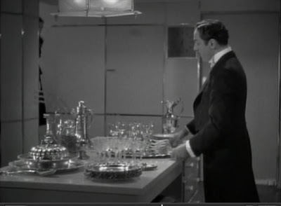 I watched the Norma Shearer movie The Divorcee (1930) over the weekend believing that the movie's sets included a country house done up in Hollywood Regency decor. Well, wrong movie. The Divorcee did not have such a set. Still, the movie was interesting to watch. A pre-code film, the movie's plot was, for the time, rather scandalous. In a game of tit for tat, Shearer's character cheats on her husband after discovering that he had an affair. (In the scene shown at top, a chipper Shearer had not yet learned about her husband's cheating ways.) Shearer then receives a lesson in society's double standard when it comes to adultery. While her husband's fling was a piffling event, Shearer's affair was a cardinal sin, something that eventually leads her down the road to moral looseness. Let's just say that for the era, the movie was considered to be shocking.