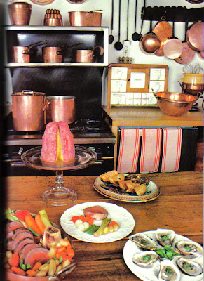 And then here is White's private kitchen. I hate to state the obvious, but isn't the copper cookware the draw here? That bombe adds a little eye candy to the photo too.