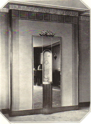 Now, a door like this could not have been in the apartment of a milquetoast. Instead, it graced the New York apartment of screen legend Gloria Swanson circa 1928. I can't quite figure out where the door actually is or how it opened, but that's not the point. The mirrored panels were outlined in steel molding, and in the middle was an electric fountain backed with a bright gold niche. Yes, the fountain shows questionable taste, but hey, it was Gloria Swanson. And you have to admit it was pretty creative.