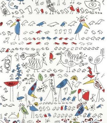 "New York, New York" wallcovering in Black on White. Both this print and "Aviary" wallcovering at top were designed by Saul Steinberg in the 1950s. I think his drawings are so charming!