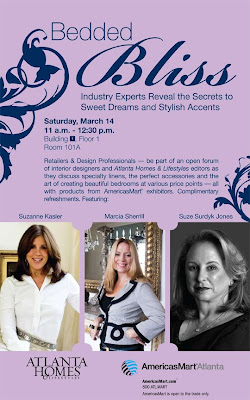 The event takes place at Atlanta's Americas Mart tomorrow, Saturday, March 14 from 11 a.m. to 12:30 pm (Building 1, Floor 1, Room 101A). For more information, please visit Atlanta Homes & Lifestyles' website.