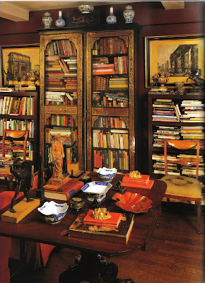 The Boulle cabinet that was used as honest to goodness bookshelves. Look how the books were piled willy-nilly. I'm a stickler for symmetry, but I think this looks just great.