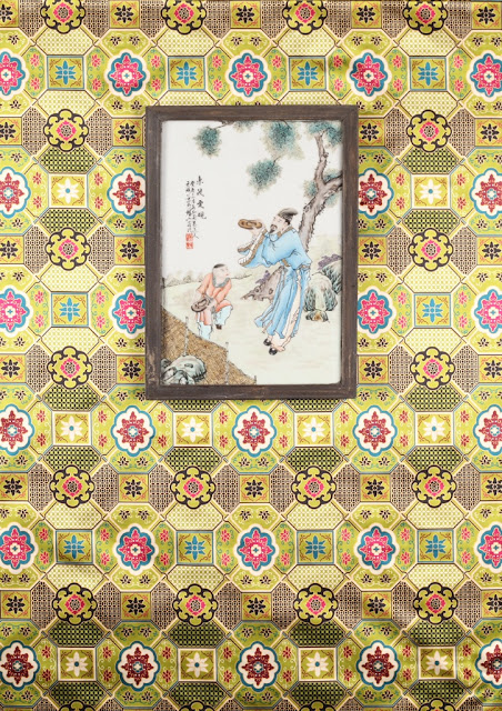 Of his current collection, the "Parsi Gara" group of fabrics is especially steeped in Indian history. The Parsis are Indians of Persian descent, having fled religious persecution during the eighth to tenth century A.D. (By the way, both Zubin Mehta and the late Freddy Mercury claim Parsi lineage.) Eventually settling in India, the Parsis later flourished and prospered during the British Raj, with some Parsis emigrating to China for trade purposes. This mixture of Persian, Indian, European, and Chinese influences is evident in the "Parsi Gara" fabrics, which includes Marsh Multi, Parsi Gara, Canton Multi, and Mandarin (see below.) The other part of the current collection includes beautiful silks like Gilded Age chintz, Tiger and Ming.