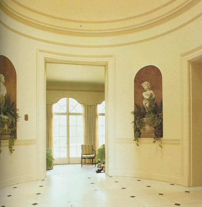 What strikes me about this house is that it is not particularly large. (Don't we wish that some homeowners and their architects would follow in Shutze's footsteps by building houses in smaller yet architecturally-meaningful ways.) Upon entering the house's entrance gallery, you'll find a dining room to the left and a drawing room to the right. Walk straight ahead through a small rotunda and down a few steps, you'll discover a light-filled morning room, which looks out onto the gardens. Off of the rotunda are a kitchen, breakfast room, and (I believe) two bedrooms and baths, while an additional bedroom and bath, which was a later addition, is located upstairs, above the morning room.