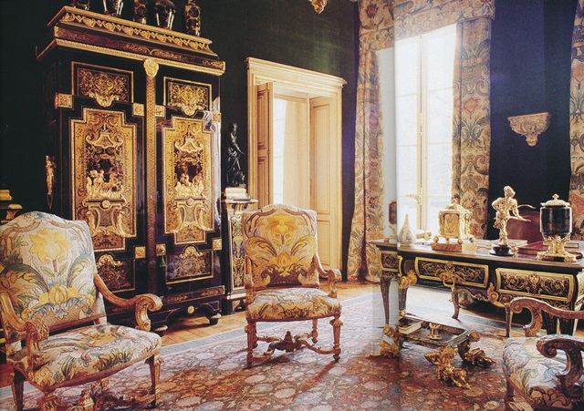 Few have such flair with the color green as does Givenchy, who often enriches the shade with gilt accents. Luscious green velvet-covered walls of the salon vert provide a sumptuous backdrop for equally sumptuous furnishings, including a Boulle armoire, desk, and torchères. Meanwhile, in the grand salon, a lighter touch is provided with creamy boiserie walls and ivory taffeta curtains, punctuated by a striking Savonnerie carpet and green upholstery and lamp shades. Finally, the dining room, more of a living space really, is a study in French refinement. But despite the richness of the surroundings, the rooms never appear visually suffocating or heavy. As a fellow collector so rightly noted of Givenchy, "Who else is so adept at tempering dix-huitième pomp with vingtième siècle restraint as Hubert?"