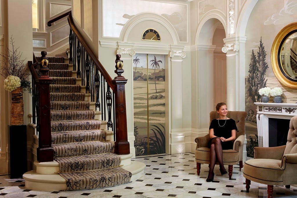 Although I have never been a guest at The Goring Hotel in London, I have long been familiar with it. The hotel, which recently celebrated its 105th anniversary, has endeared itself to generations of well-heeled guests, including the Duchess of Cambridge, who, as you might recall, spent the night before her wedding at The Goring. Just a few days ago, I read that the hotel had reopened after a major refurbishment, but I did not know until yesterday that Fromental, whose hand-painted wallpapers send me into reveries, was responsible for the magnificent scenic paper in the hotel's Front Hall, which was decorated by Russell Sage.