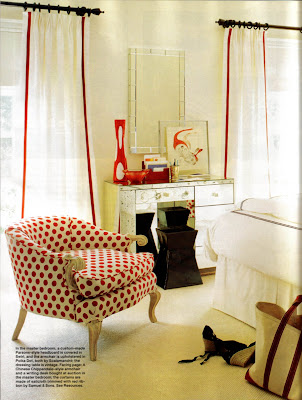 Image at top: Bedroom of Debbie Bancroft; designed by Richard Mishaan; chair fabric is "Polka Dot" by Scalamandre.