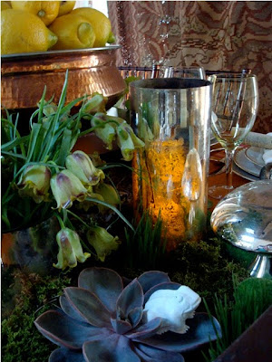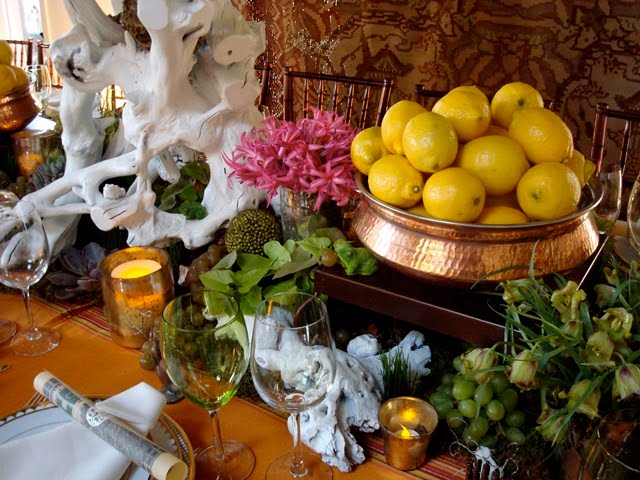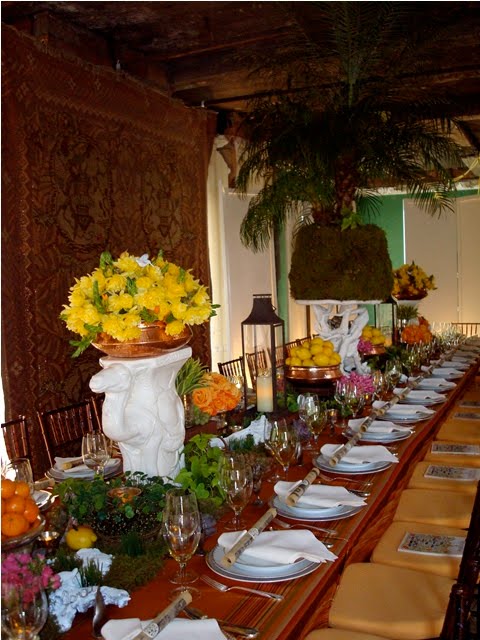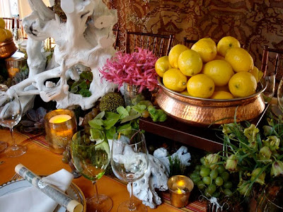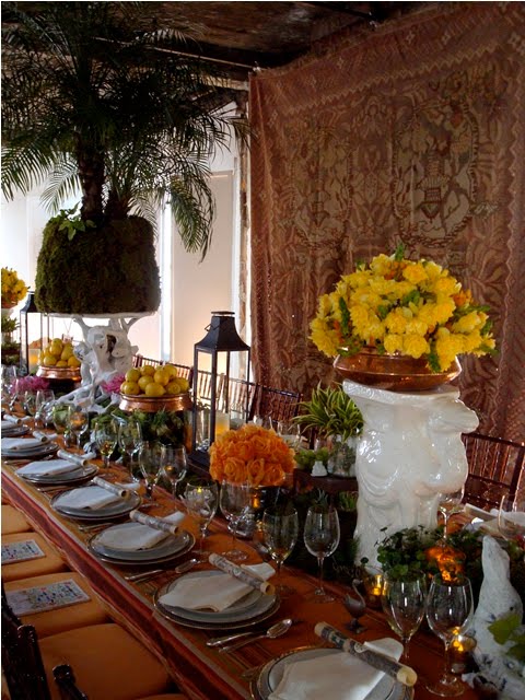 My friend Jonathan Preece's creativity never ceases to amaze me. A very talented designer on staff at Bunny Williams, Jonathan is known for creating the most amazing and theatrical tablescapes. I think that what fascinates me most about Jonathan's handiwork is that it's not just about striking colors, pretty linen, and fetching china. There is always an underlying theme that inspires the various elements of the table decor. And believe me, the theme is always well researched. When Jonathan tells me about his various inspirations, I usually have to visit Wikipedia to figure out what he is talking about.