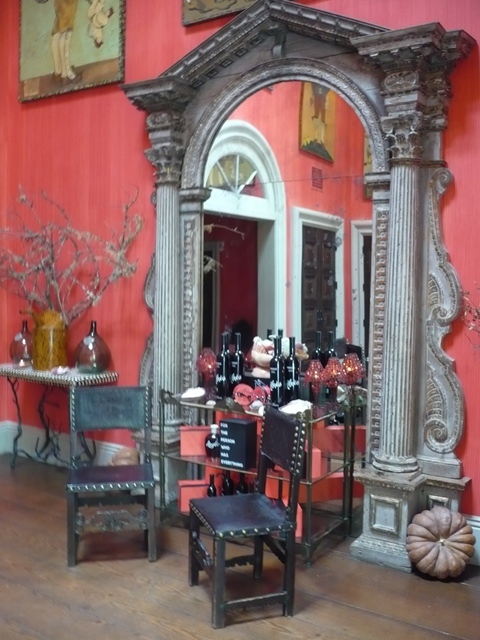 Alexis Swanson Traina, the super clever Creative Director of Swanson Vineyards, envisioned the Salon as a modern day version of those much romanticized Parisian salons- an intimate place for conversation, discussion, and conviviality. It is in the Swanson Salon that the formal tastings are held. And seriously, you feel as though you're at a chic home. Much of the decor was done by Britt (who, as godfather to Alexis, is someone near and dear to the Swanson family.) Britt chose a pinky red strié finish for the walls that is the perfect backdrop for the eccentric but fabulous paintings by California artist Ira Yeager. Antiques with great old patina are dotted throughout the space.