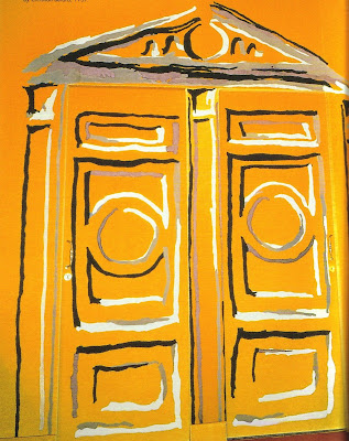 While this is not a faux painted architectural detail, this figural painting is charming nonetheless. Located in the entrance hall of Tony Duquette's home "Dawnridge".