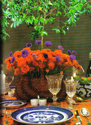 *Perhaps you have picked up some blue Staffordshire or old Canton china plates.... Try these on a mustard-yellow cloth with a big bunch of bluets or purple violets.