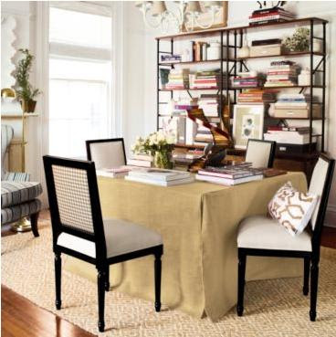 This 48" square card table and cloth from Ballard Design might be slightly large for two, but for three or four it would be perfect.