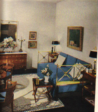 (Bed at top was designed by Paul McCobb, while the brass campaign bed was Baker)