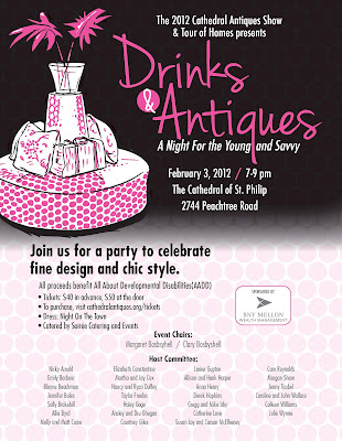 I hope that my Atlanta readers will join me next Friday, February 3 for Drinks & Antiques- A Night for the Young and Savvy at The Cathedral of St. Philip. The party, part of the annual Cathedral Antiques Show, will be an opportunity for young designers and collectors to peruse the offerings of participating antiques dealers, all while socializing in a festive atmosphere. Of course, being able to purchase antiques and vintage pieces is enough of a draw for me, but in case you need a few more reasons to entice you, there will be music, libations, and both a slider station and a mac n cheese bar. But the most important reason to attend is that all proceeds benefit All About Developmental Disabilities (AADD). Tickets are just $40 in advance and $50 at the door.