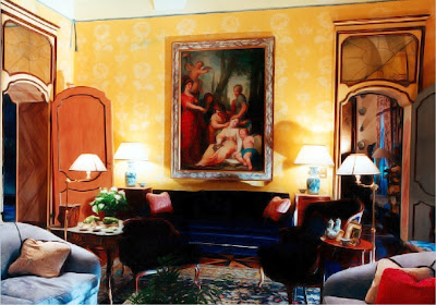 While hopping around the internet recently, I discovered the work of Italian designer Paolo Genta of Studio Genta. Some (or perhaps many) of you are probably familiar with his work. I was not. Unfortunately, I can't glean much information about Genta from his website. However, a lengthy bio really isn't necessary after taking a look through his online portfolio of projects. His interiors are really quite stunning thanks to rich color, sumptuous fabrics, and serious furniture. It's a layered, rich look, one that I liken to a boeuf bourguignon or a pot au feu (or whatever the equivalent is in Italian cuisine.) All of the elements in the rooms seem to meld together to create a look that is hearty and flavorful.